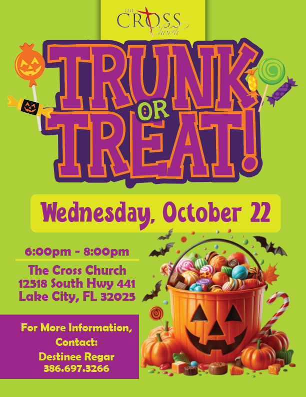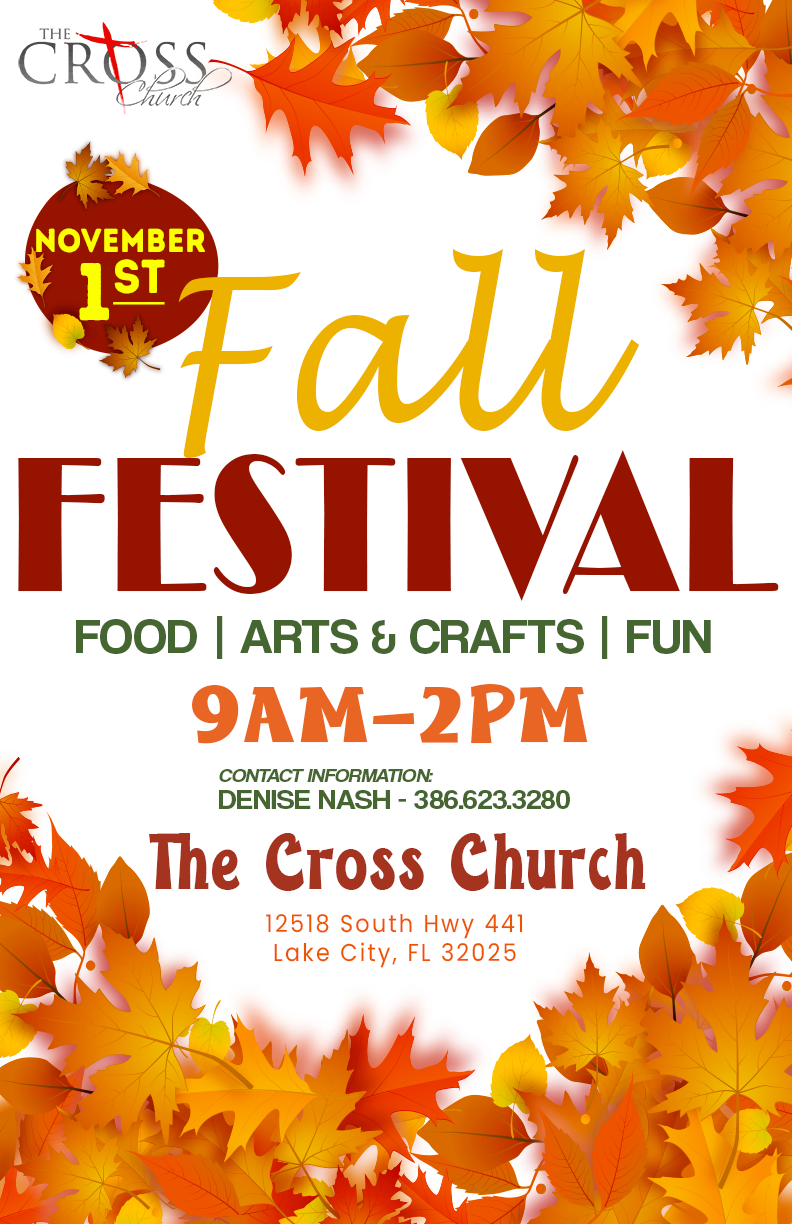 The Cross Church 12518 South U.S. 441, Lake City, FL, United StatesOctober 16 - October 31, 2025 Sunday - Friday: 1:00pm - 6:00pm Saturday: 10:00am - 6:00pm
